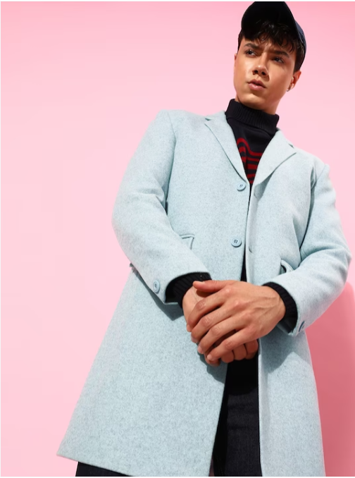 The Lifestyle Co. Men Solid Regular Blue Fit Longline Overcoat